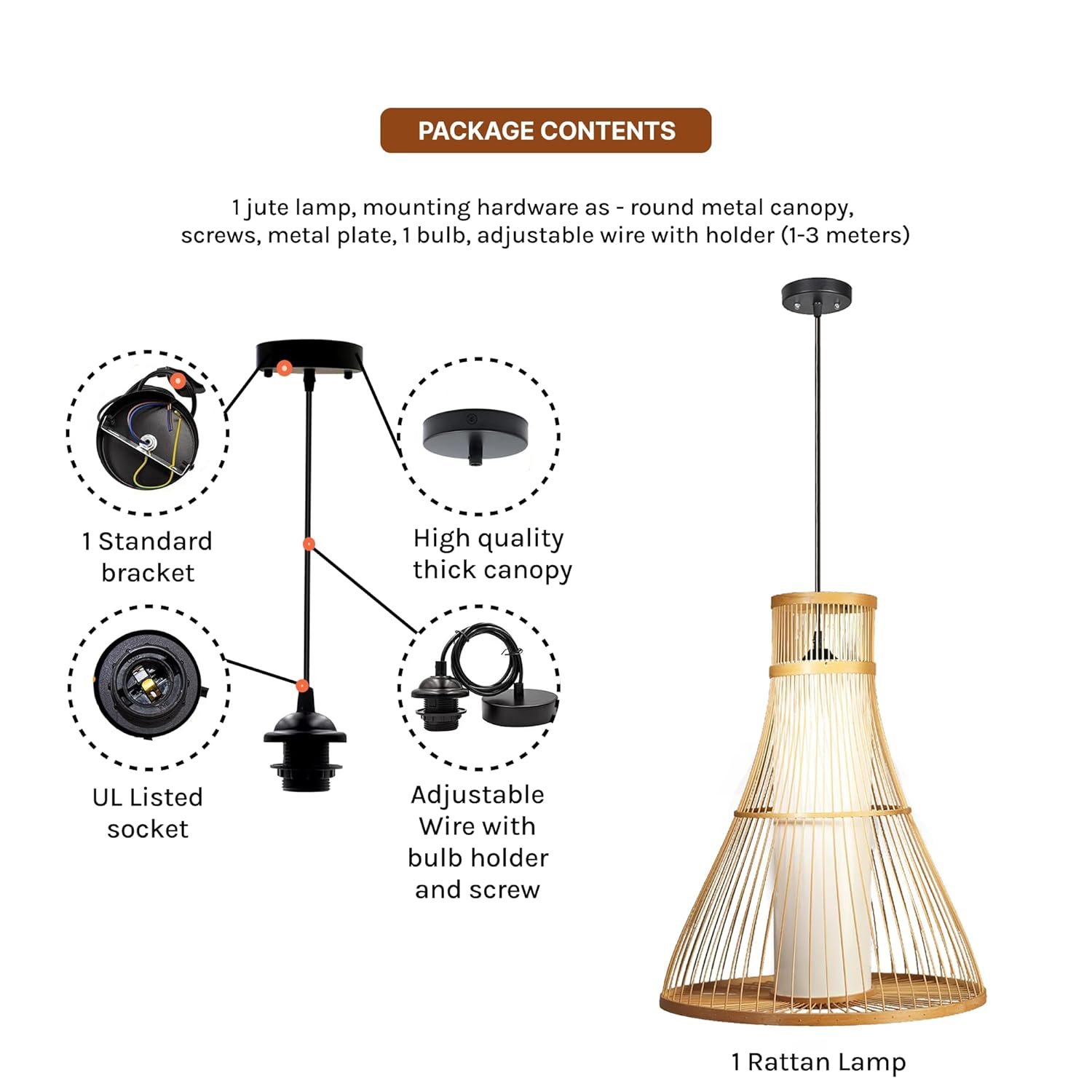 - Package Contents : 1 Lamp, 1 Bulb and Mounting hardware is included.