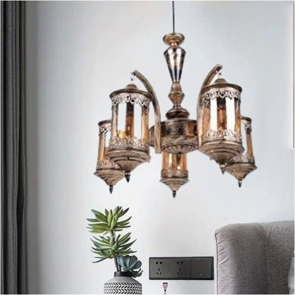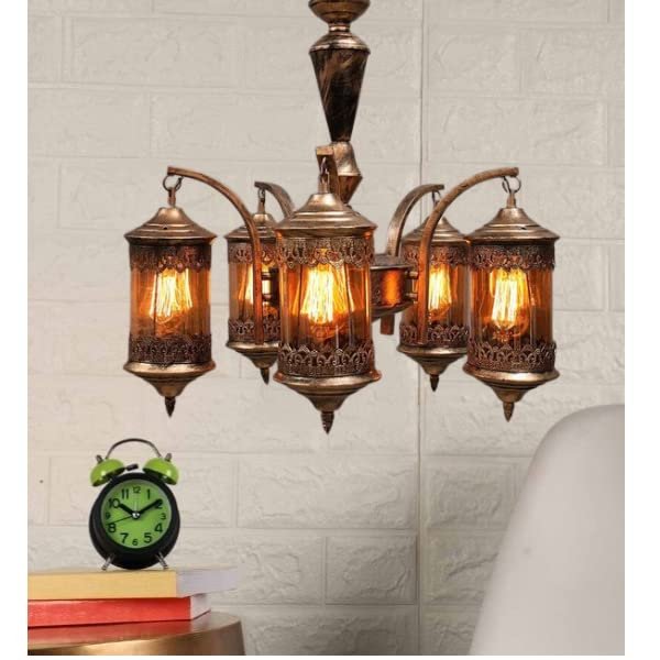 5 Light Vintage Modern Golden Antique Jhoomar Chandelier for Home, Living Room, Bedroom, Office, Dining, Cafe, Restaurants.