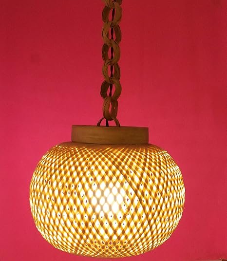 Gold Bamboo Hanging Lamp (12 Inch, 5 Watts, Globe)(AC/DC)