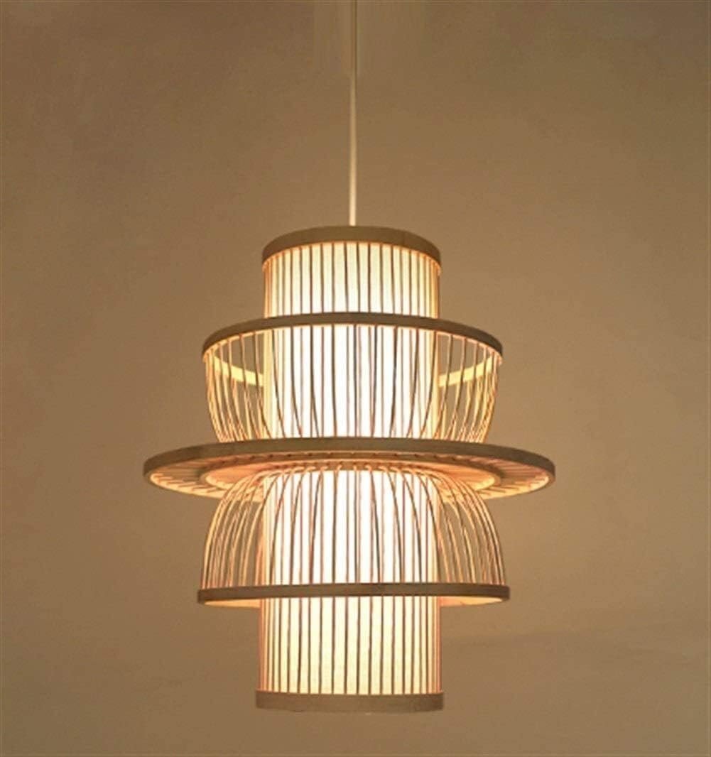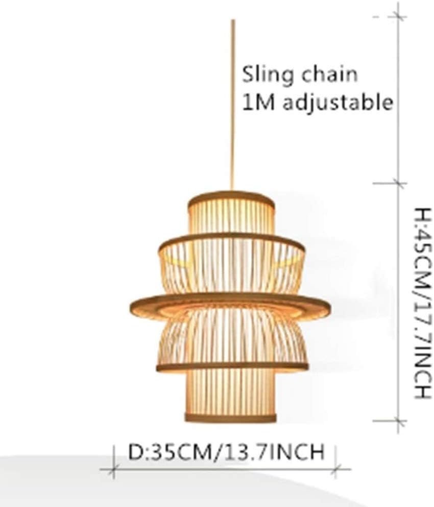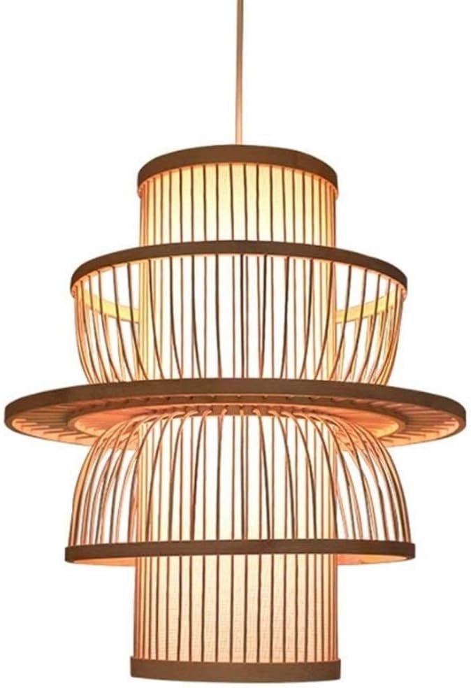 Natural Bamboo Rattan Chandelier, Multi-Layer Handmade Pendant Lamp Simple Retro Ceiling Light Restaurant Coffee Interior Decoration Chandelier, Height Adjustable